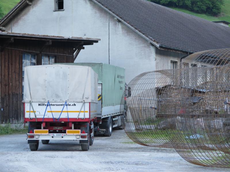 Wie jedes Jahr waren wir am Flughafen-Flohmarkt und konnten rund 11 Tonnen Hilfsgüter sammeln: Die Bilder sind beim Eintreffen bei der Hilfsgüterzentrale gemacht worden. Lastwagen, Lastwagenanhänger und Anhänger sind gefüllt mit Hilfsgüter.